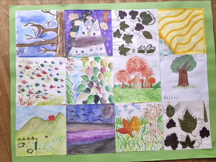 Die Weltklasse hat im 1. Quartal 2025/2026 am Wettbewerb "Artenvielfalt" der Beratungsstelle Umweltbildung und der FHNW teilgenommen. Die Weltklasse hat ein Poster mit zwölf Einzelarbeiten gestaltet, welche zusammen ein ganzes Kunstwerk ergeben. Jede Schülerin und jeder Schüler durfte ihre/seine Idee des Waldes auf eine eigene Art umsetzen. Es gab Aquarellwerke, Farbstiftarbeiten, Schwarz-Weiss Studien und Kombinationen mit getrockneten Blättern, welche die Schülerinnen und Schüler selber im Wald gesammelt und getrocknet hatten. Die Schülerinnen und Schüler haben sehr gern mitgemacht.